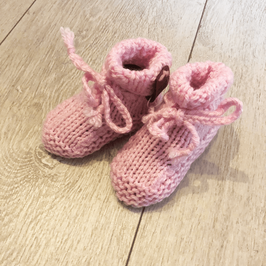 Zachte, hand-gebreide Merino wollen slofjes voor baby’s van 0-6 maanden. Ademend, temperatuur regulerend en verkrijgbaar in stijlvolle kleuren.