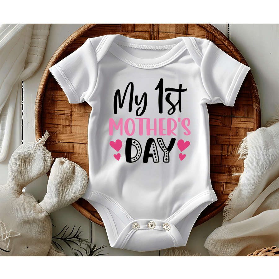 Absoluut schattig! Een rompertje met “Mijn Eerste Moederdag” bedrukt is een lief geschenk.