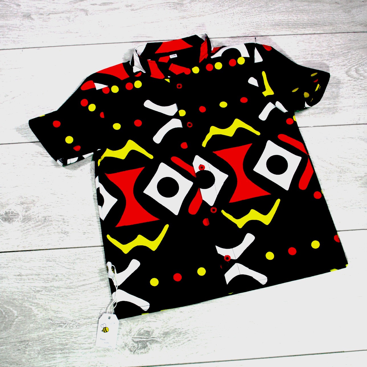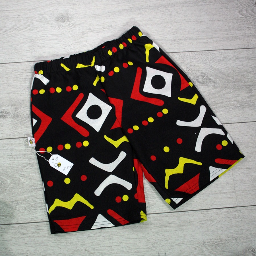 Zomerse set van 100% katoen met vrolijke Safari Sunrise print. Handgemaakt in Spijkenisse van kleurrijke wax-stof.
